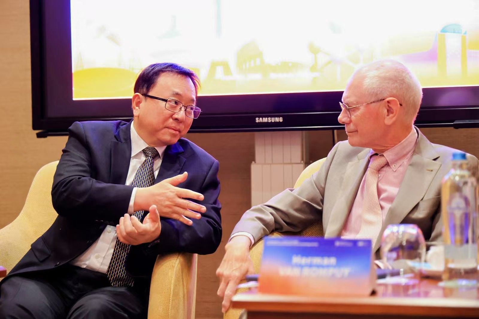 欧洲理事会首任主席范龙佩在演讲中重点分析了当前错综复杂的全球地缘政治,阐释了中欧关系的现状及未来发展方向。他指出,尽管中欧双方在复杂地缘政治影响下在某些领域存在分歧,但必须保持对话渠道畅通,以便抓住机遇,推动合作。